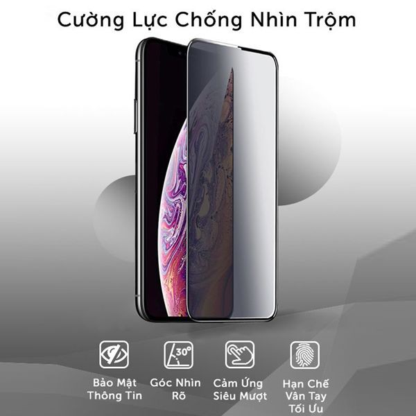 Kính Cường lực chống nhìn trộm, chống vân tay full màn iphone 6/7/8/6Plus/7Plus/X/Xr/XsMax/11/11Pro/11ProMax