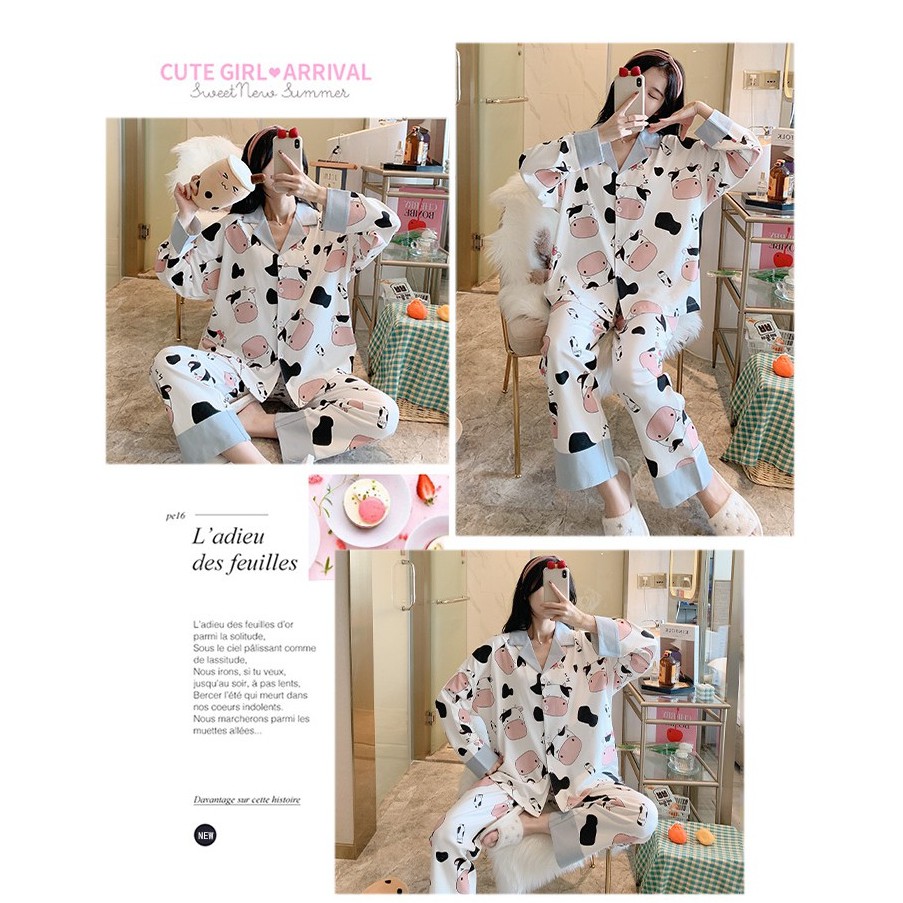 Bộ pijama lụa kate thái bộ mặc nhà mềm mại và mượt mà dễ thương