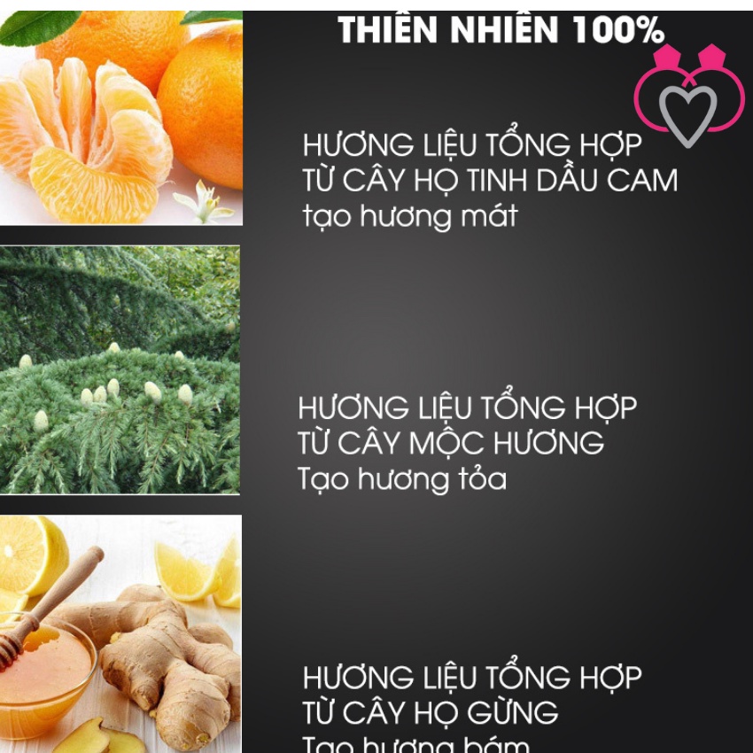 • Hương cuối: hương liệu tổng hợp từ gừng tạo hương bám