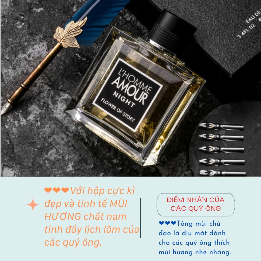 Nước Hoa Nam 100 ML Dầu Thơm Nước Hoa Nam Chính Hãng L’Homme Amour eau de parfum thơm lâu nam tính mạnh mẽ Tinh Dầu Nước Pháp
