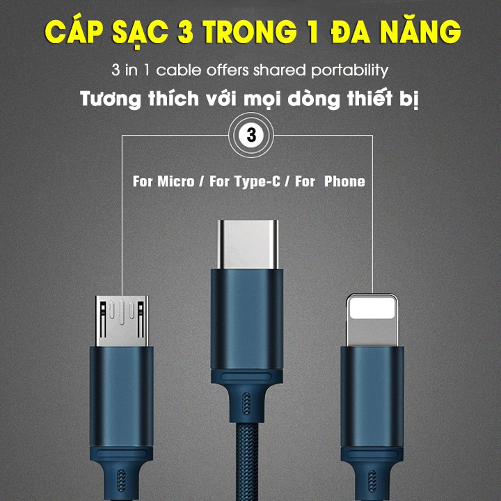 – Mẫu thành phầm: 3 Trong 1 (Micro/ TYPE- C/ iPhone)