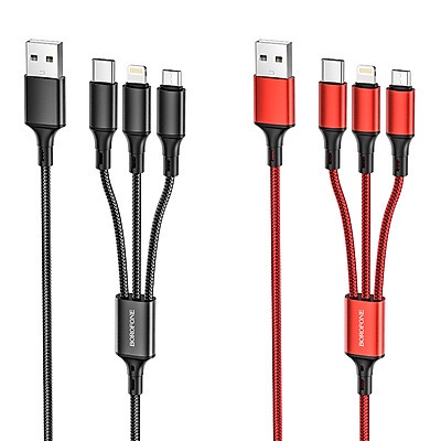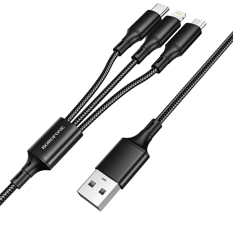 Cáp sạc nhanh 3 đầu BOROFONE BX50 3 trong một cổng Lightning/ Micro/ TypeC max 2.4A dài 1M – CHÍNH HÃNG