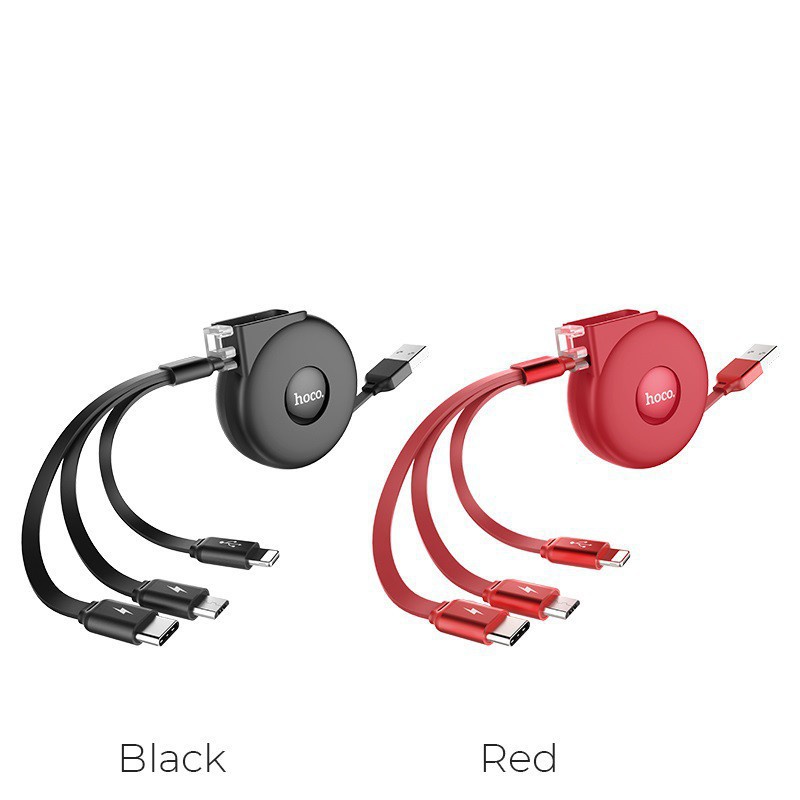 Cáp sạc nhanh 2A Hoco U50 – 3 đầu thu gọn hàng thật