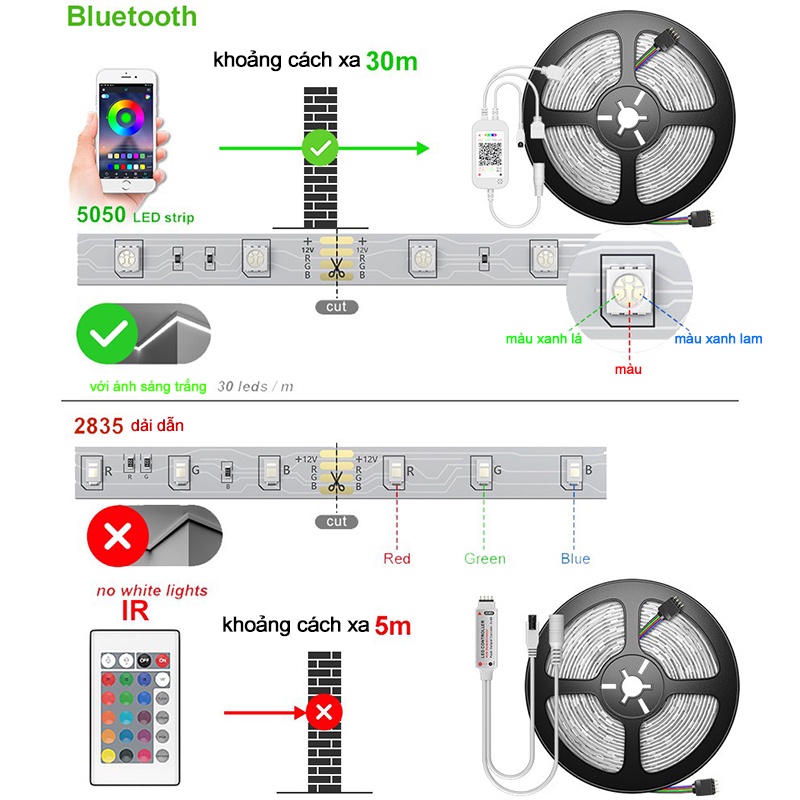– Led dây trọn vẹn có thể cắt chiều dài tùy thích, đoạn nhỏ nhất là 3cm