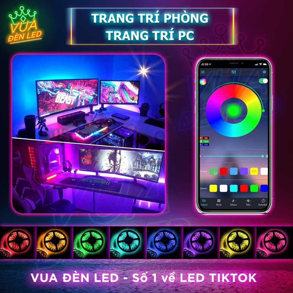 Đèn led Tiktok 3m 5m RGB 16 triệu màu điều khiển và tinh chỉnh bằng điện thoại cảm ứng, nháy theo nhạc, cuộn dây led đổi màu