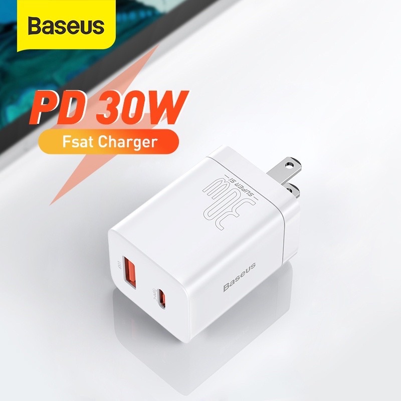 Cốc Sạc Nhanh Baseus 30w Cao Cấp Củ Sạc Nhanh 2 Cổng USB/ Type C- Cục Sạc Hỗ Trợ QC 3.0, USB PD Cho Ipad/Iphone/Android