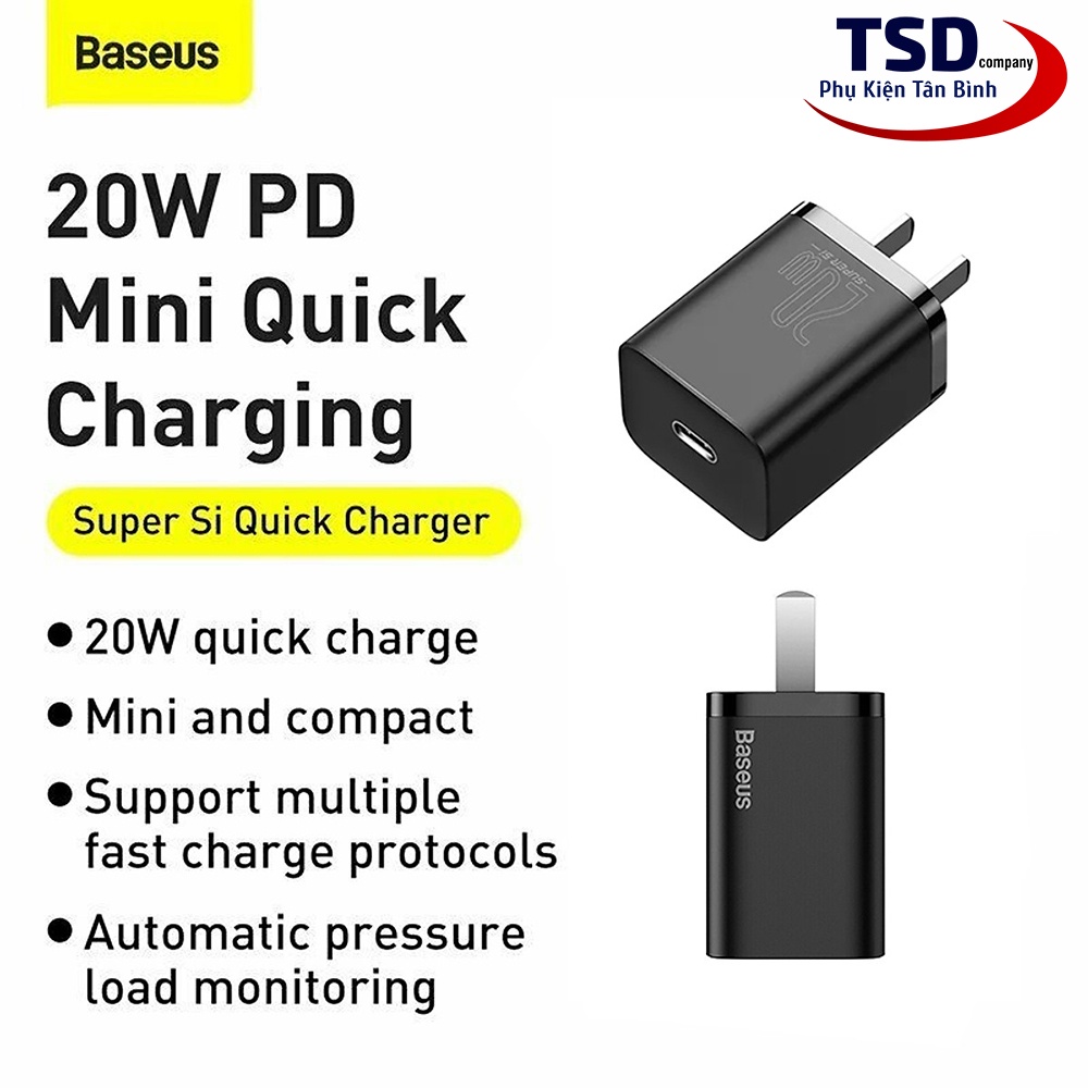 Cốc Sạc Baseus Super Si Mini Usb C Qc3.0 Pd 20w Sạc Nhanh Cho Điện Thoại Iphone 12
