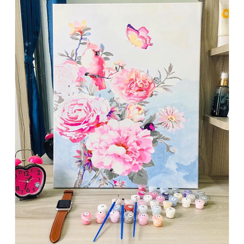 Tranh tô màu theo số hoa cho những người dân lớn xả stress thư giãn giải trí Tranh những loại hoa có sẵn căng khung dày 2.5cm