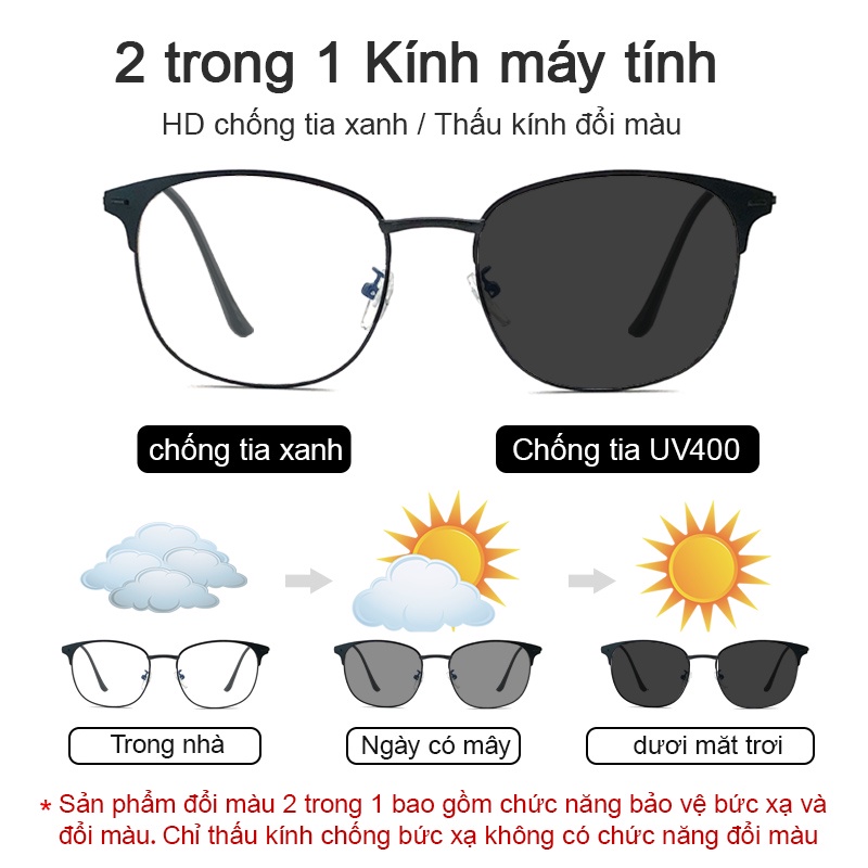 ✅Tròng kính đổi màu – Tròng kính sẽ tối đi khi ánh sáng xung quanh trở nên sáng hơn (nhìn rõ hơn dưới tia nắng mặt trời).
