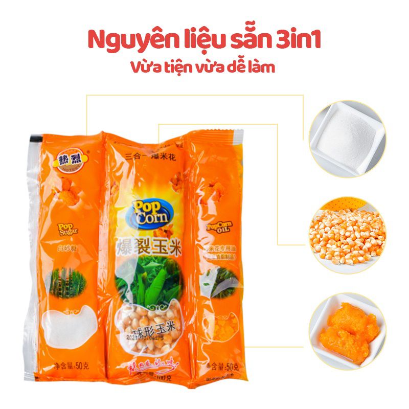 Bắp Rang Bơ 3in1 Set Ngô Nổ Bắp Nổ Tự Làm Bỏng Ngô Đồ Ăn Vặt Vị Caramel Bơ Chocolate tiện lợi dễ làm