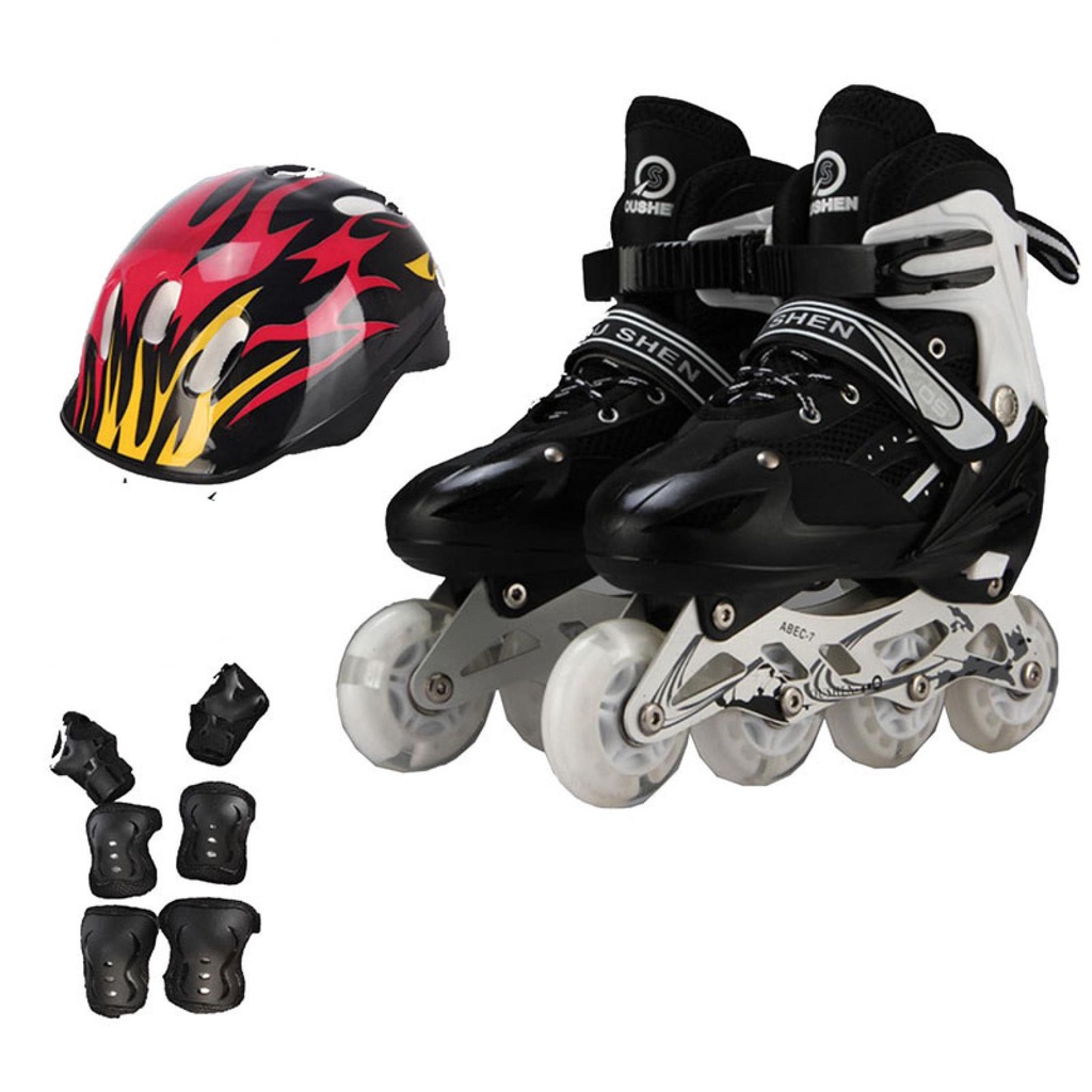 Giày patin trẻ nhỏ tặng kèm bảo lãnh tay và đầu gối, bánh xe phát sáng đi vừa với bé trai và gái từ 3-14 tuổi, có 3 màu