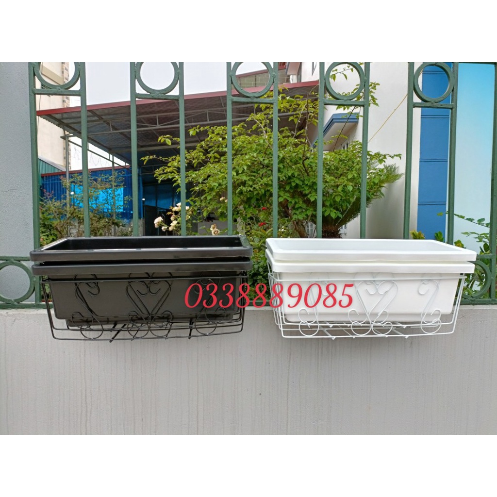 Combo chậu ban công + giá sắt treo chậu ban công 48x19x15_ Chậu treo ban công kèm giá sắt_Chậu thông minh