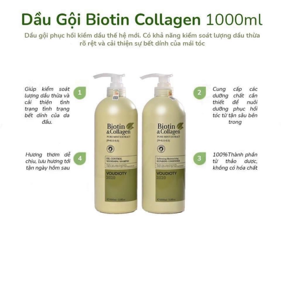Bộ Gội Xả Biotin Collagen Xanh Lá 1000ml (Phù thích phù hợp với tóc dầu, gàu)